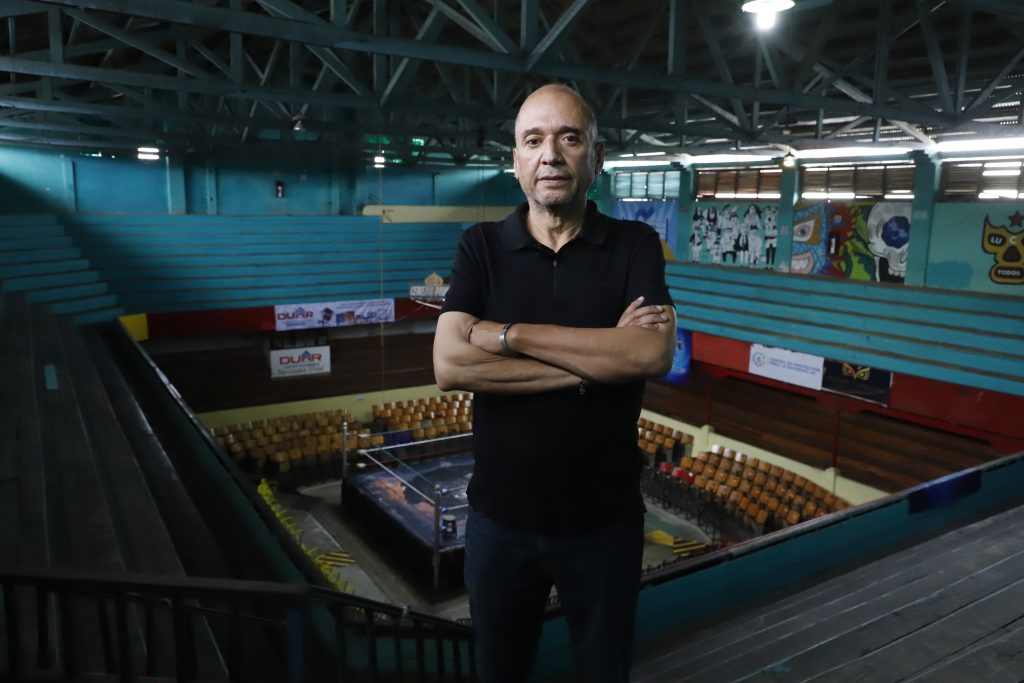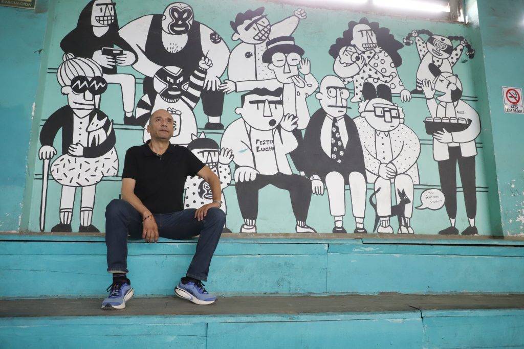 El origen es íntimo y contundente: la infancia en las luchas libres. La imagen de gigantes sobre el ring, el ritual de las caídas, el vértigo de subirse a las cuerdas después del combate. Todo eso se convierte en materia poética.