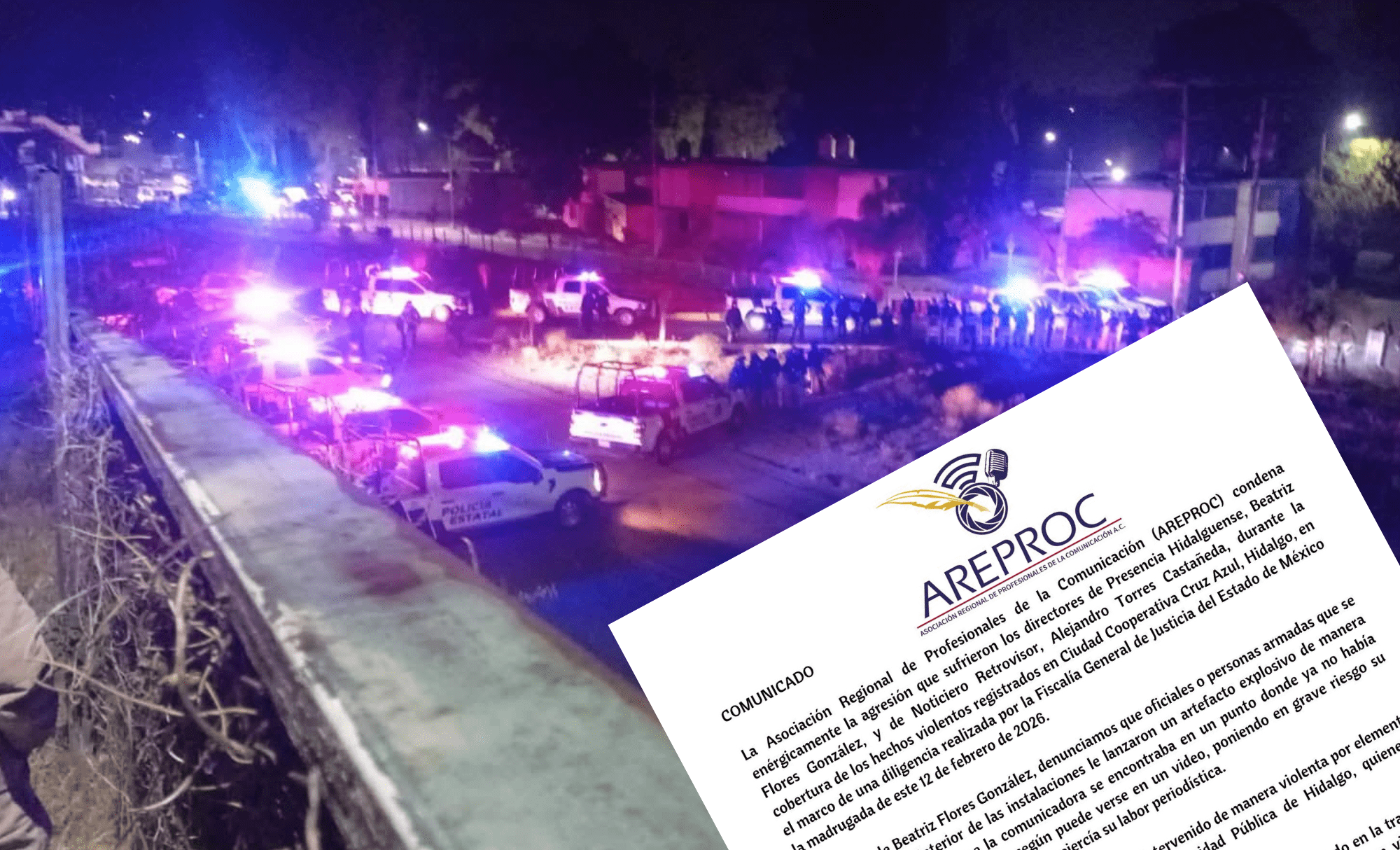 La Asociación Regional de Profesionales de la Comunicación condenó los ataques sufridos por dos periodistas mientras cubrían los hechos violentos registrados en Ciudad Cooperativa Cruz Azul, durante una diligencia encabezada por la Fiscalía General de Justicia del Estado de México en la madrugada del 12 de febrero de 2026.