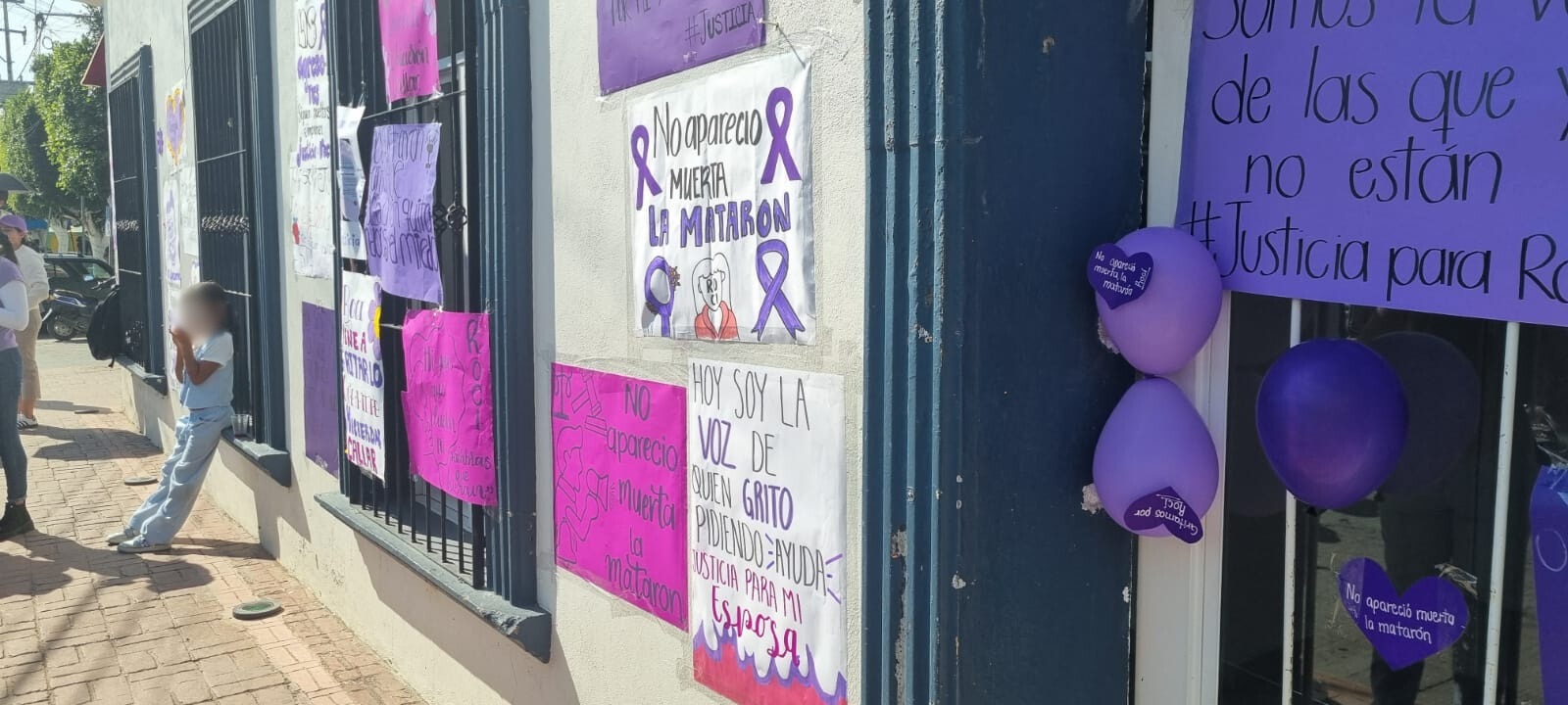 - La movilización, identificada como “Marcha contra el Feminicidio”, partió de la calle Revolución, en la comunidad de Mangas, y concluyó frente a la presidencia municipal, donde la fachada fue cubierta con cartulinas y consignas como “Justicia para Rocío” y “Ni una menos”.