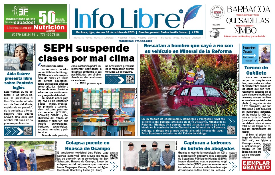 Un ataque más que grave que se suscitó esta semana, fue el cometido en contra del compañero periodista, Jorge Luis Pérez, quien de la manera más cobarde fue violentado por un funcionario municipal de Mineral del Chico, por órdenes directas del candidato a la alcaldía, abanderado por el PRI-PAN y PRD. Nos solidarizamos con él y nos sumamos a la petición del gremio de investigar hasta las últimas consecuencias y a quien resulte culpable, todo el peso de la ley.