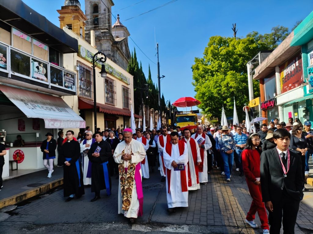 • El recorrido, que partió de la Catedral y concluyó en el Seminario Mayor de San Miguel, congregó a cerca de 8 mil personas, contingente que implicó logística, seguridad y organización, respaldado en este caso por 36 elementos de seguridad.