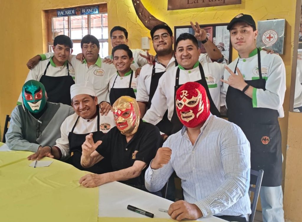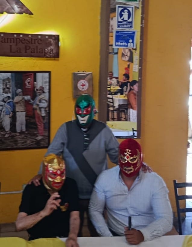Ambos habían acudido a comer a La Palapa, donde se come rico y barato, y en coincidencia se encontraron con el presbítero luchador.