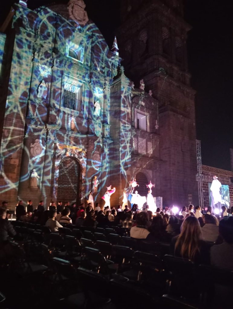 En la voz de la cantante de jazz, compositora y productora Magos Herrera, se escuchó otra vez a la décima musa en el espectáculo inmersivo Primero sueño que tuvo como escenario el atrio de la Catedral y zócalo de esta ciudad.